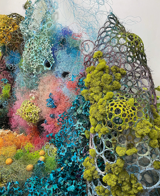 Manhattan-based sculptor Margolis works with synthetic materials and found objects to construct sumptuous organic environments.